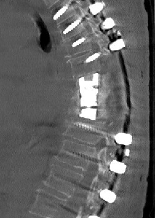 After removing the diseased vertebrae, a more normal curvature was restored to the spine.