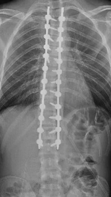 Adolescent scoliosis. This individual underwent spinal fusion with excellent results.